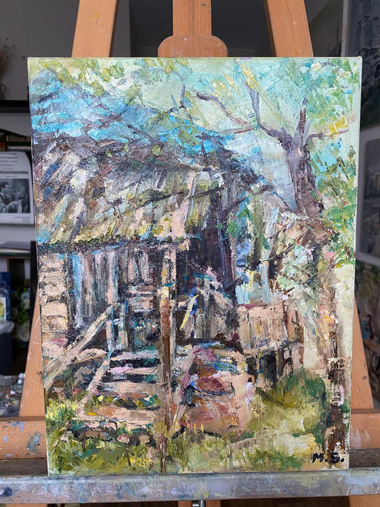 Charming Oil Painting of an Old Cottage - Rustic Impressionist Art on Canvas